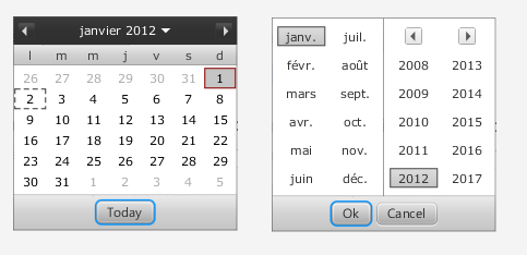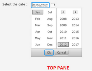 Desired month and year can be selected and upon clicking the "Ok" button, the month is displayed in the base pane.