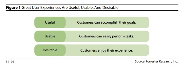 Forrester defines user experience as: Users’ perceptions of the usefulness, usability, and desirability of an application based upon the sum of all their direct and indirect interactions with it.