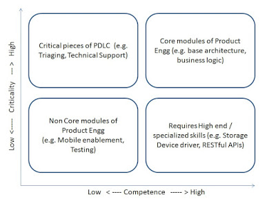 Maturity and experience (past or none) also drives one to identify what to outsource. I have come across product engineering managers who have outsourced: